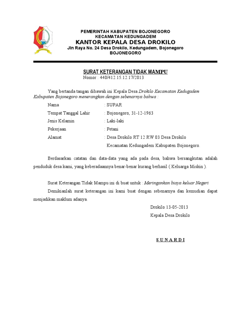 Contoh surat keterangan tidak mampu miskin media desa sumber dari :